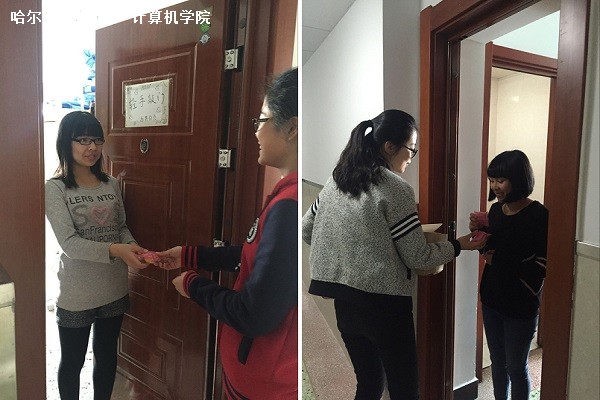 我院学生会中秋节下寝室分发月饼