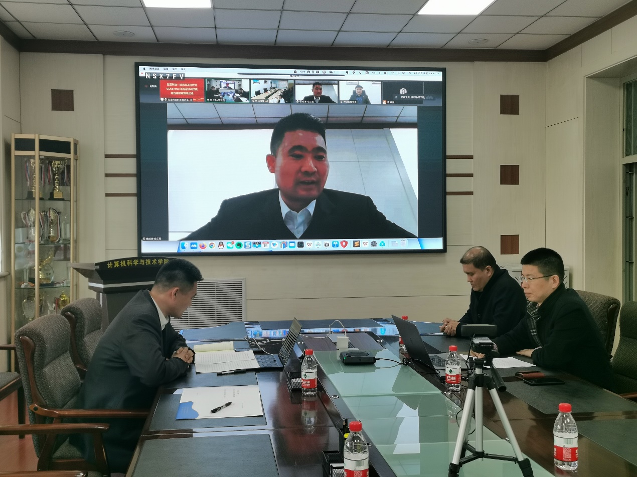 4月15日,由我校软件学院、北京世冠金洋科技发展有限公司共建的“GCKontrol 系统设计与仿真联合实验室”揭牌仪式举行。我校科学技术研究院常务副院长秦志亮、软件学院院长蔡成涛、软件学院副院长冯光升、软件学院副院长王巍、北京世冠科技创始人、董事长李京燕、北京世冠金洋科技发展有限公司总经理张桥、北京世冠金洋科技发展有限公司战略总监王磊及北京世冠金洋科技发展有限公司工程师出席揭牌仪式。