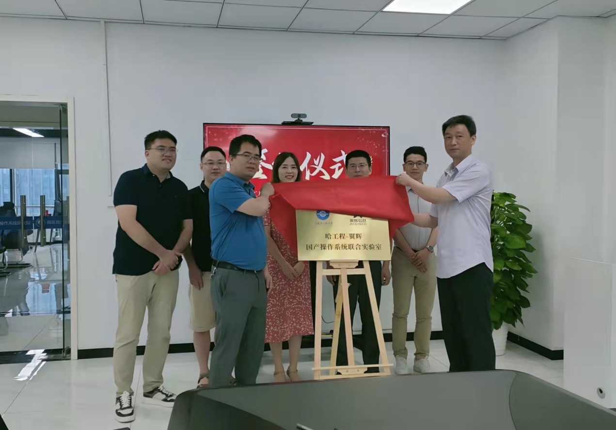 2022年7月22日,哈尔滨工程大学国家特色化示范性软件学院学院与南京翼辉信息技术有限公司共同参与的“哈工程-翼辉”国产操作系统联合实验室成立签约仪式于南京翼辉三楼会议室举行。哈尔滨工程大学计算机科学与技术学院党委书记刘冬、副院长冯光升、教师代表李伟、南京翼辉信息技术有限公司副总经理李孝成、产学研经理褚敏丽、教育经理陈洪邦、总经理助理朱寿羽共同出席了联合实验室成立仪式。