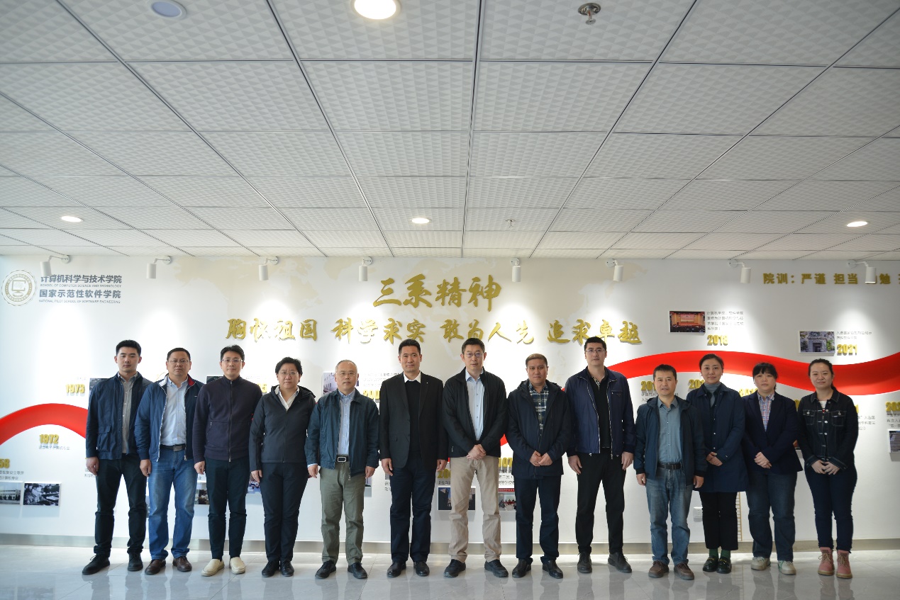 在西安电子科技大学调研中,计算机学院一行首先参观了西电AI+教育中心、计算机网络与信息安全国家级实验教学中心及西电计算机科学与技术学院,了解了西电特色的“人工智能+教育”新生态、各类实验室以学院情况。之后,与西电计算机科学与技术学院党委书记李青山,执行院长崔江涛,副院长沈玉龙、杨力,党委副书记张莹莹,研究生与学科科研办公室齐富进行了座谈,座谈环节双方就如何建设示范性软件学院、如何提升学科建设以及师资引人方面等问题进行深入交流。崔江涛表示特软学院的建设是培养关键技术攻关人才,落实新型产教融合,在共赢背景下结合企业地方资源开展软件人才培养。双方对于后续交流达成共识,此次调研仅是起点,兄弟院校今后优势生源互推,博士资源区域互荐,希望能彼此输送更多人才。