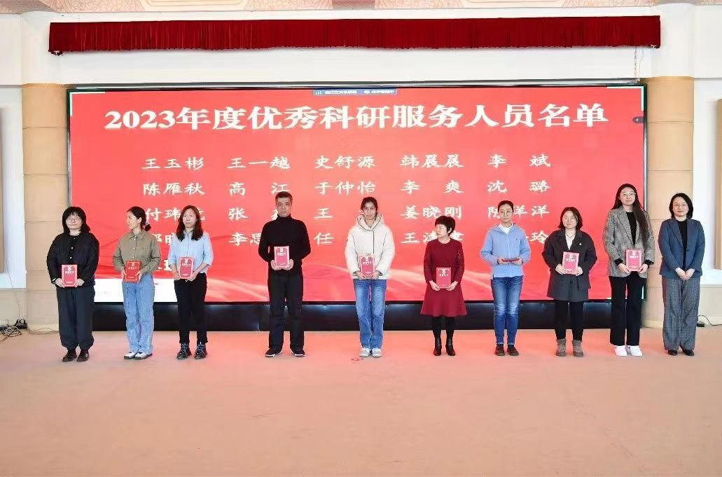 我院教师姜晓刚荣获“2023年度优秀科研服务人员”,陈冲荣获“2023年度优秀引才工作者”,并现场授领导颁奖。希望学院教职工可以借此契机,提高工作、服务质量,积极参与到学院“综改”的各项工作当中,为学校、学院科技创新、教学育人以及人才培养等工作做出贡献。