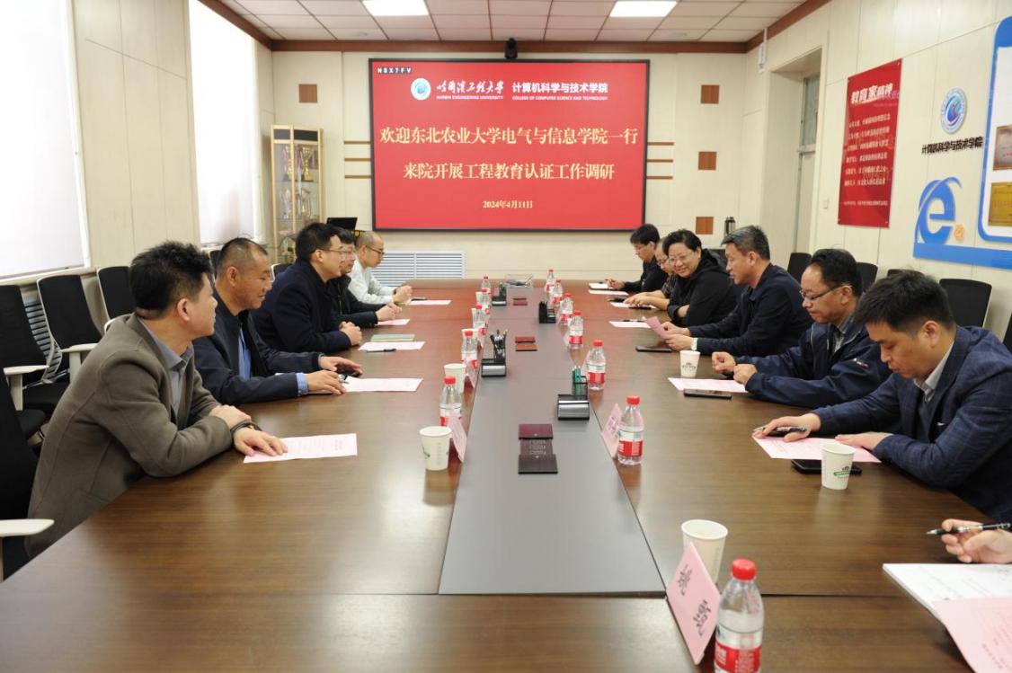 4月11日9时30分,东北农业大学电气与信息学院院长戴百生一行五人来院开展工程教育认证工作调研。计算机科学与技术学院党委书记刘冬、副院长吴艳霞、软件工程教学与研究中心教师印桂生、计算机教育与实验创新中心主任刘书勇、网络技术与信息安全教学与研究中心教师玄世昌、本科生教育办公室齐海洋、姚甄参加。