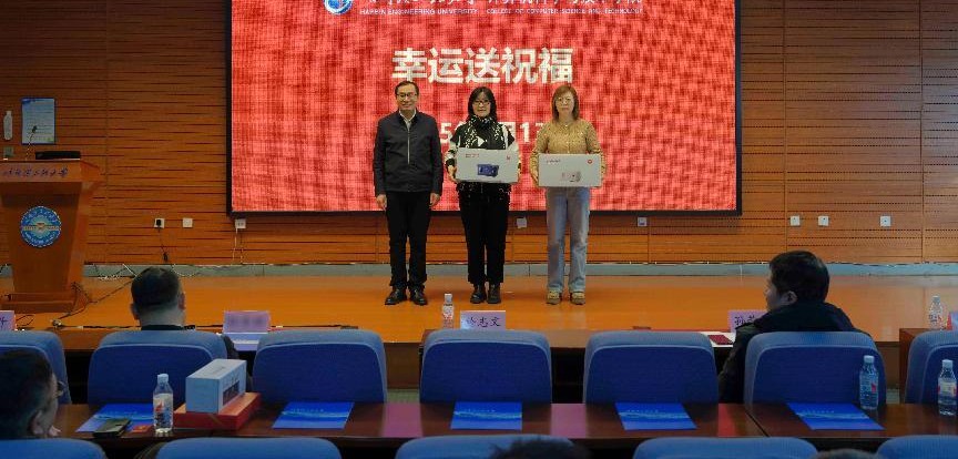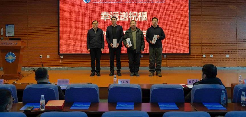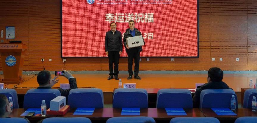随后,於志文副校长启动新春幸运送祝福环节,亲自抽取年度幸运教职工,并为幸运教师颁发纪念品。