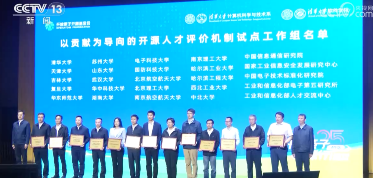 开放原子“校源行”会上正式发布“开放原子校源行2.0”和“以贡献为导向的开源人才评价机制”并正式成立试点小组。该工作组由清华大学、北京航空航天大学、哈尔滨工程大学等 25 所高校及科研院所共同组建,旨在构建适应新时代需求的开源人才培养标准与评价体系。我校作为首批成员单位入选,标志着在开源教育领域的探索实践获得行业认可。