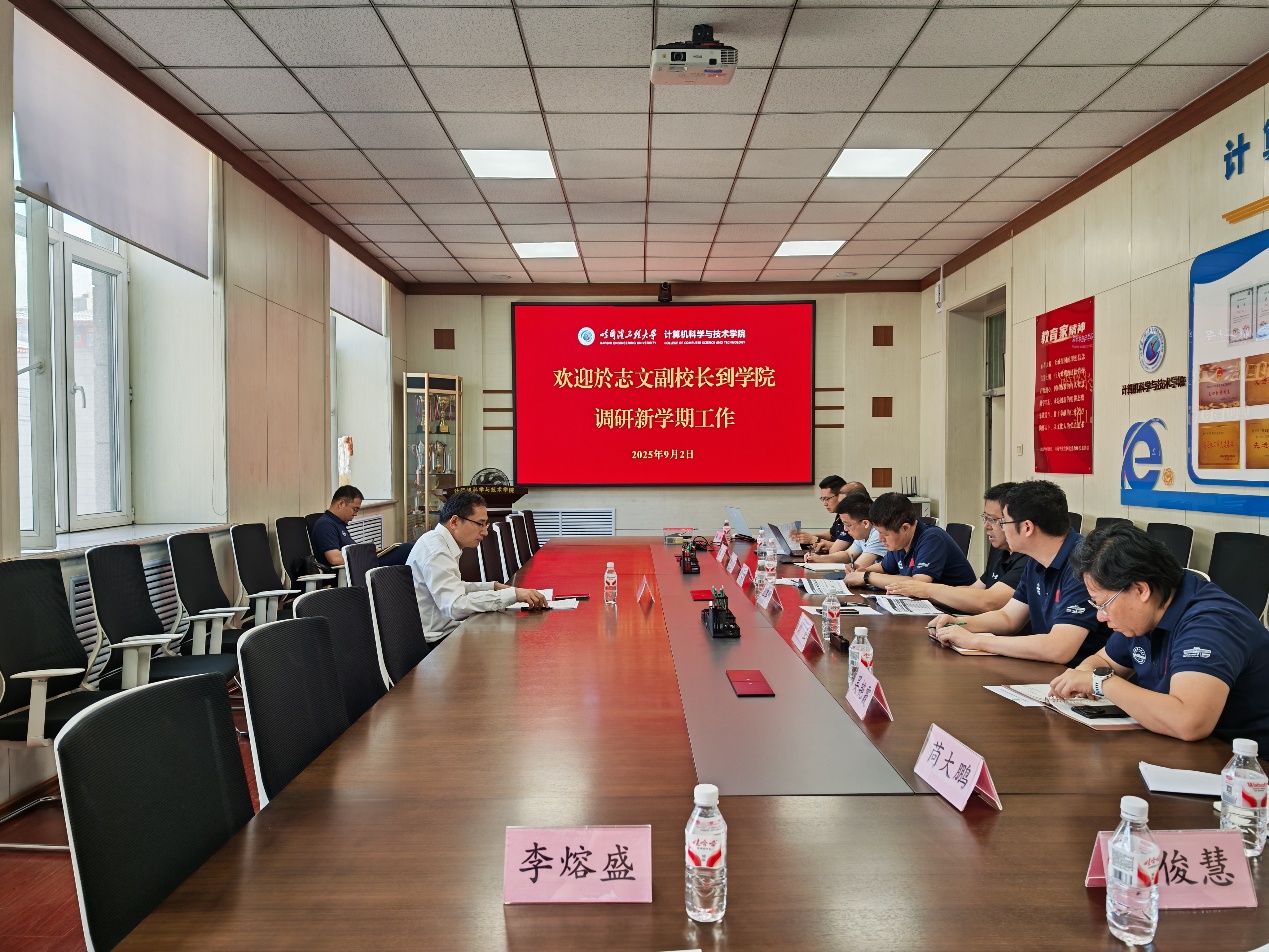 2025年9月2日,新学期伊始,校党委常委、副校长於志文到国家特色化示范性软件学院走访调研,全面了解学院新学期工作准备情况,听取学院工作汇报并给予指导。学院领导班子全体成员参加调研座谈会。