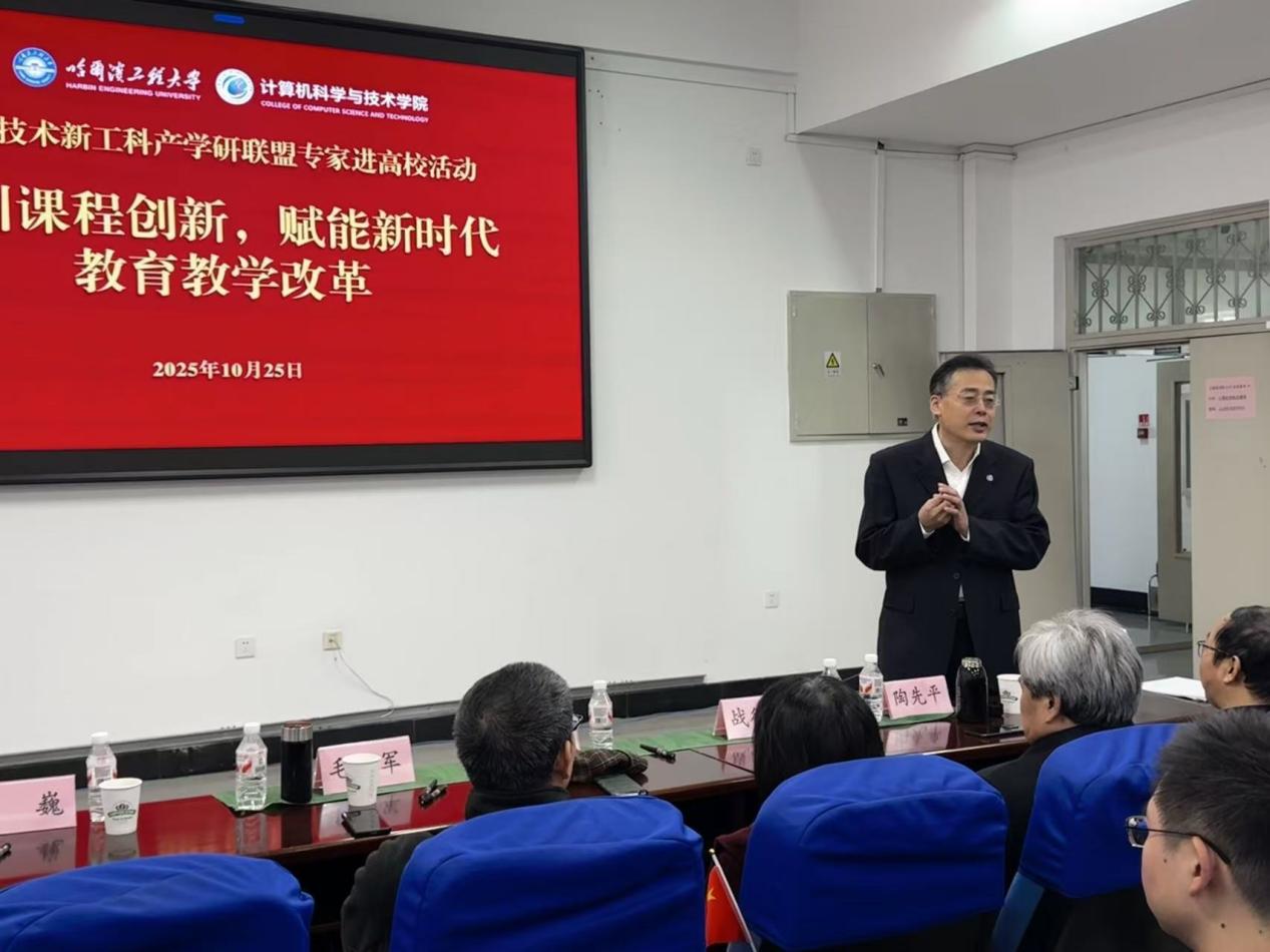 2025年10月25日,由信息技术新工科产学研联盟专家进高校工作委员会、联盟实践教学工作委员会,联合中国计算机学会(CCF)教育专业委员会主办的“联盟专家进高校”第83站在哈尔滨工程大学计算机科学与技术学院成功举办。本次活动以“智引课程创新,赋能新时代教育教学改革”为核心议题,吸引了校内师生约70余人参与,共同探讨“101计划”课程建设及资源利用以及大模型赋能专业建设和教学改革。