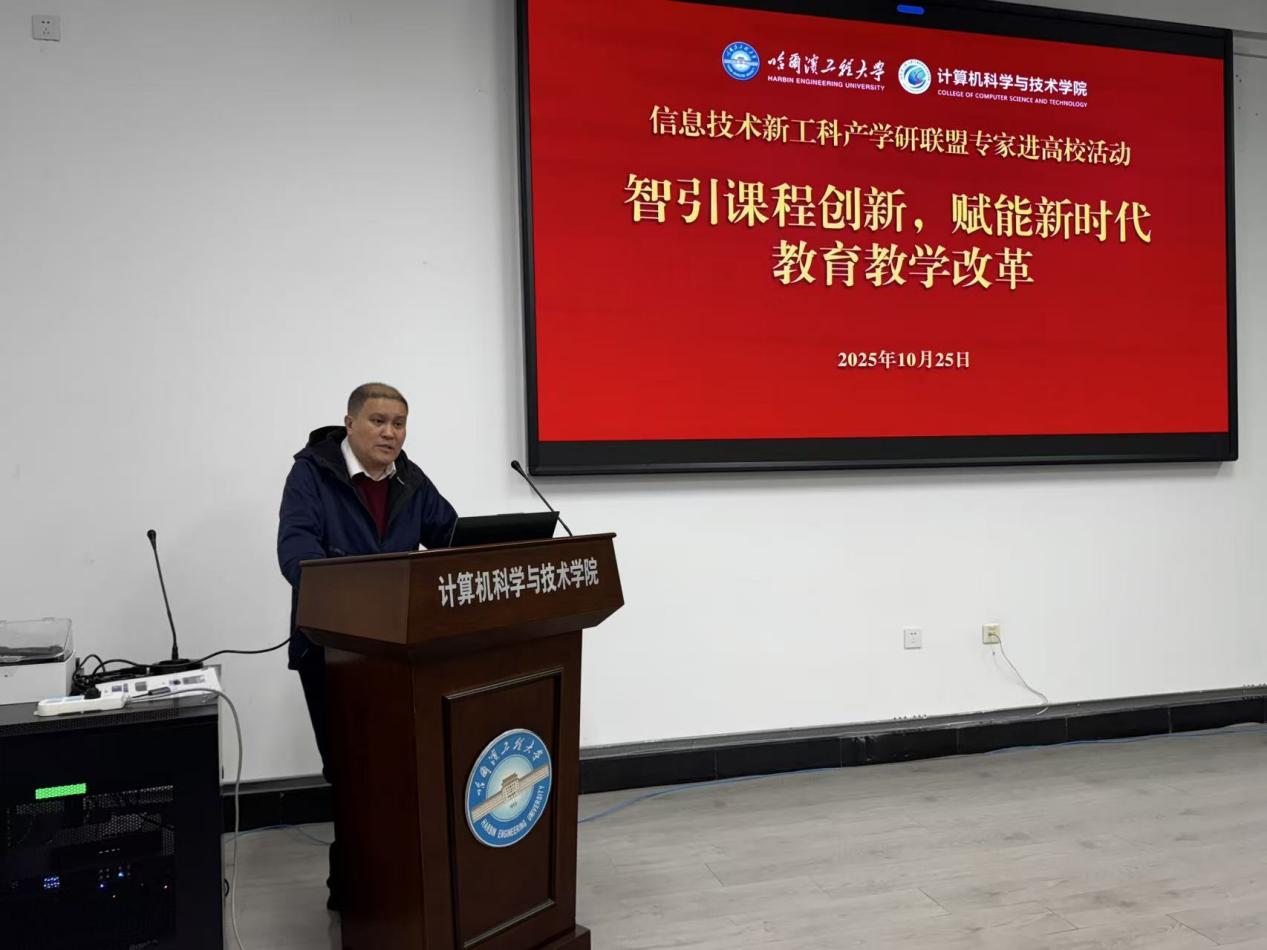 2025年10月25日,由信息技术新工科产学研联盟专家进高校工作委员会、联盟实践教学工作委员会,联合中国计算机学会(CCF)教育专业委员会主办的“联盟专家进高校”第83站在哈尔滨工程大学计算机科学与技术学院和国家特色化示范性软件学院成功举办。本次活动以“智引课程创新,赋能新时代教育教学改革”为核心议题,吸引了校内师生约70余人参与,共同探讨“101计划”课程建设及资源利用以及大模型赋能专业建设和教学改革。