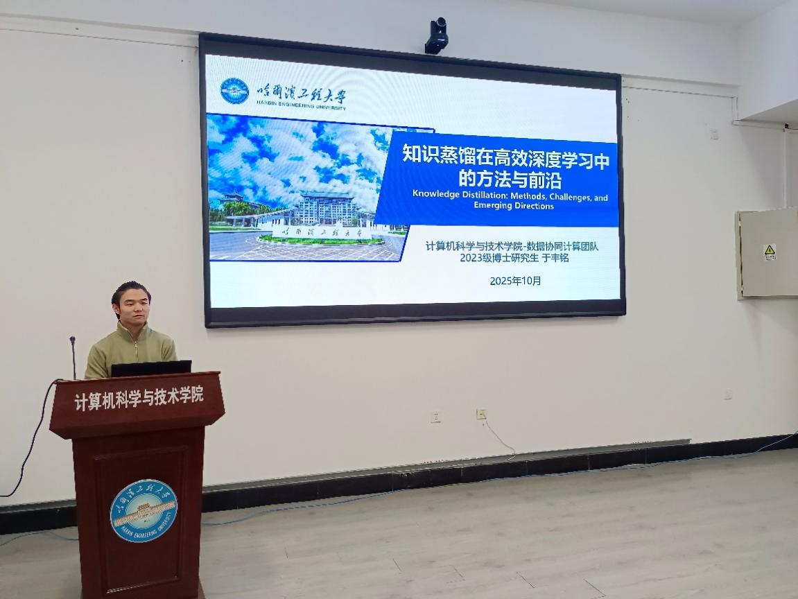 来自国家特色化示范性软件学院的数据协同计算团队代表于丰铭,随后带来了其在数据蒸馏理论、方法及系统构建方面的前沿探索,展示了高效数据处理能力在解决大规模复杂问题中的潜力。最后,该学院人工智能与媒体计算团队的朱亚隆,汇报了团队在人工智能前沿算法、媒体内容分析与生成等领域的创新工作,凸显了智能技术在提升系统感知与交互能力方面的广阔应用空间。