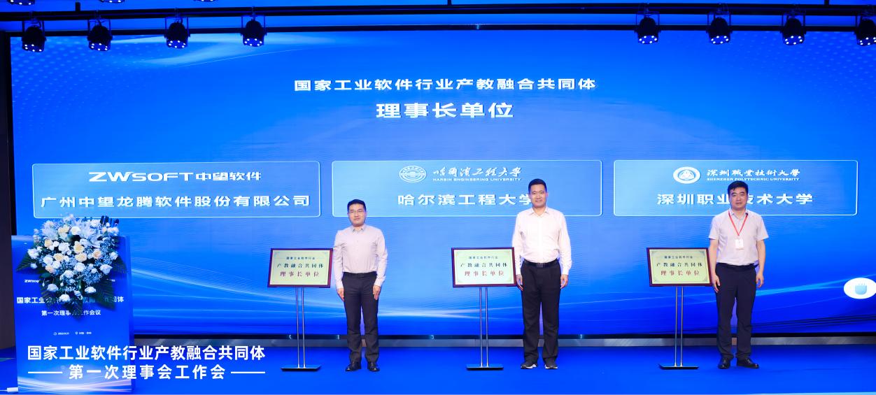 2023年9月21日,由广州中望龙腾软件股份有限公司(以下简称“中望软件”)、哈尔滨工程大学、深圳职业技术大学联合主办的国家工业软件行业产教融合共同体(以下简称“共同体”)第一次理事会工作会议在深圳成功举办。中国工程院院士谭建荣、教育部高校毕业生就业协会常务副会长兼秘书长张凤有、广东省教育厅职终处副处长许颖、深圳职业技术大学校长许建领、哈尔滨工程大学国家特色化示范性软件学院院长蔡成涛、中望软件副总裁兼教育BG总经理王长民、广东省工业软件创新中心策略合作总监申杰出席本次会议并致辞,来自全国各地近200位专家、学校领导就新时代背景下,如何促进产业和教育的深度融合,提升人才培养质量和创新能力,为行业及产业发展提供人才支撑进行了深入探讨。