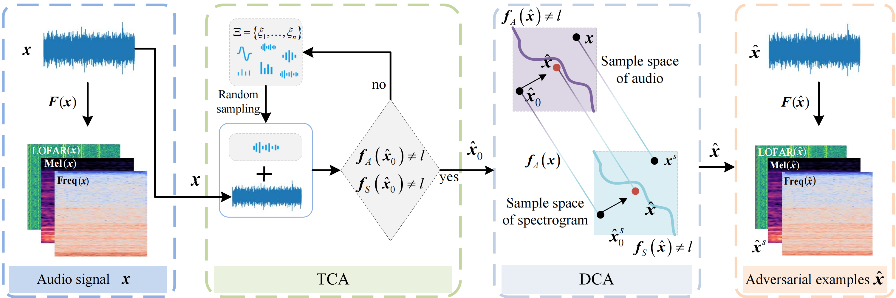 对抗攻击又称为智能欺骗,是一种针对人工智能技术的反问题研究。今年我院发表成果旨在研究多媒体领域的人工智能对抗攻击方法,聚焦于人工智能技术的安全问题。论文提出了一个细分研究方向—跨介质、跨模态的音频对抗攻击,即如何设计通过扰动同时欺骗音频识别模型和谱图识别模型,并保证其在空气和海水等传播介质中均有效。在该篇论文中,作者首次提出了跨介质攻击概念,并对跨模态攻击进行了定义,即单一来源的信号在经过不同介质和不同模态的传播和转换后,能够持续欺骗人工智能模型,极大提高了对抗攻击的泛化能力和鲁棒性。目前音频领域对抗攻击绝大部分都是在声波上进行,也有少量在谱图上进行,但并没有研究人员关注音频转化为谱图后是否依旧能欺骗目标模型。目前深度学习模型越来越复杂,在无法得知内部结构和参数的前提下,攻击者很难得知模型是以哪种处理模态对音频信号进行识别的,但目前可查的案例中并没有研究同时攻击以音频为输入的识别模型和以谱图为输入的识别模型。