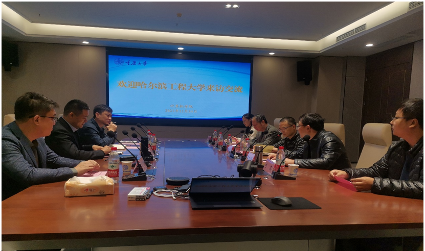 在重庆大学调研会上,重庆大学计算机学院党委书记杨守鸿首先对我校一行来访表示欢迎,并介绍了学校历史沿革、学院学科建设、办学规模、人才培养等情况。蔡成涛院长对哈工程和计算机学院情况进行了介绍。随后双方就促进学院发展的创新举措和改革机制、学科团队建设、人才引进举措、课程培养方案等内容进行了深入交流。重庆大学计算机学院副院长郭松涛、副院长钟将、青年教师刘高、何家玲等参加了此次调研会。