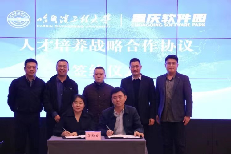 重庆软件园总裁孙丕宏对哈工程蔡成涛院长一行的到访表示热烈欢迎,并介绍了软件园的总体情况。蔡成涛院长对学校和学院情况进行了介绍。在座谈会上,双方就推进合作交流平台共建、人才培养、产教融合等方面深入沟通交流。期待双方能够进一步开展深度、务实合作,实现校企之间技术、人才与物质资源共享,形成教育和产业统筹融合、良性互动的发展格局。会上举行了人才培养战略合作协议签约暨“哈尔滨工程大学 实习实践教学基地”授牌仪式。重庆经开区管委会副主任肖鼎光表示此次合作是促进双方资源共享、优势互补、推动科技创新的有力举措,为重庆软件园软信产业快速发展提供更好人才支撑。
