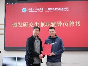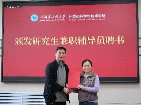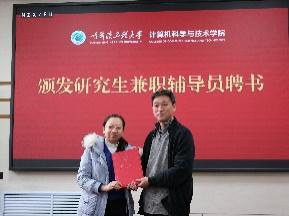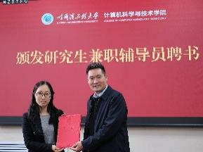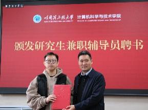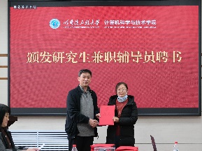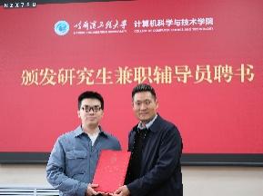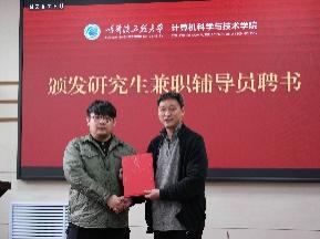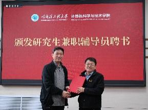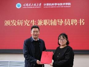 刘冬书记和蔡成涛院长向研究生兼职辅导员颁发聘书。