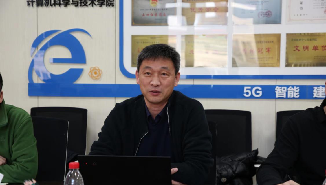 郭峰副主任代表校友工作办公室发言,他指出院史工作既重要又光荣,需要大家共同努力,携手完成。校友工作办公室会全力配合计算机学院的各项工作,积极宣传扩大计算机学院的影响力,也祝愿学院院史工作顺利圆满完成。