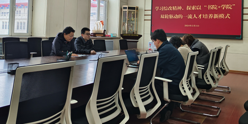 318时,本科生教育办公室在21号楼4017会议室开展综合改革精神研讨学习,探索以“书院+学院”双轮驱动的一流人才培养新模式。本次会议由学院教学副院长吴艳霞主持,专务助理李榕盛、本科生教育办公室齐海洋、李雪梅、姚甄参加会议。