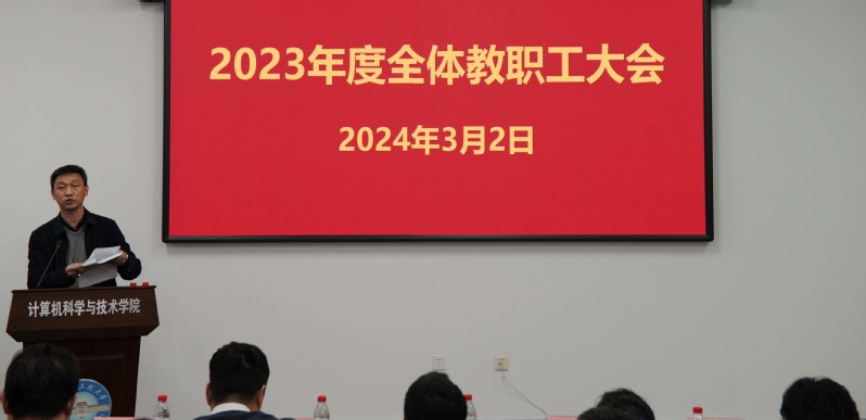 蔡成涛院长代表学院作2023年度工作报告,报告分别从人才培养、科学研究、师资队伍、专业及学科建设、学院服务与治理体系进行工作回顾总结,重点剖析当前学院发展所面临的形势及如何组织和实施2024年各项重点工作。报告最后蔡成涛院长希望学院每一位教职员工都能秉持“德高为师,学高为范”的职业操守,在新的征程中,始终保持敢于担当、勇于创新的精神,以“综合改革”为契机,全面提升学院的核心竞争力。