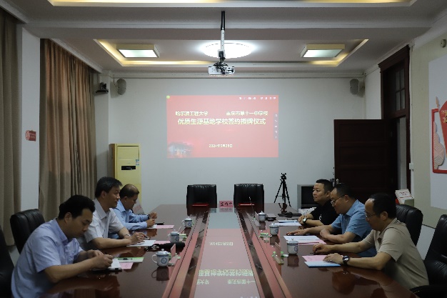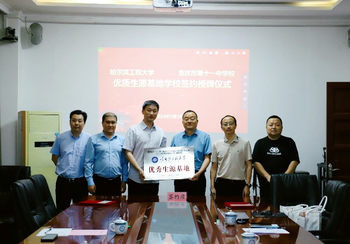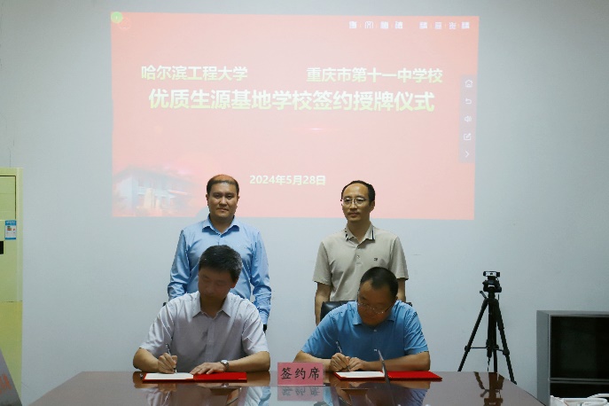 5月28日上午,党委书记刘冬、副院长王巍、骨干教师刘成刚一行3人来到重庆市第十一中学校,举行哈尔滨工程大学优秀生源基地共建协议签约仪式,重庆市第十一中学校党委书记彰显林、校长李顺林、校长助理谭远松出席了本次签约仪式。