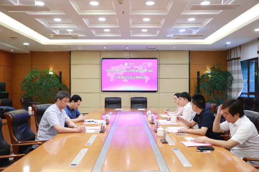 签约仪式前,彰显林书记介绍了重庆第十一中学校的基本情况,刘冬书记对哈尔滨工程大学及国家特色化示范性软件学院的历史和发展现状进行介绍。随后双方针对如何面向高中学生培养加强交流与合作进行了深入交流。