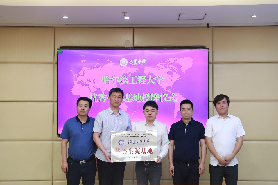 在签约仪式上,刘冬书记和彰显林书记分别代表两所学校完成哈尔滨工程大学优秀生源基地共建协议签约及授牌。